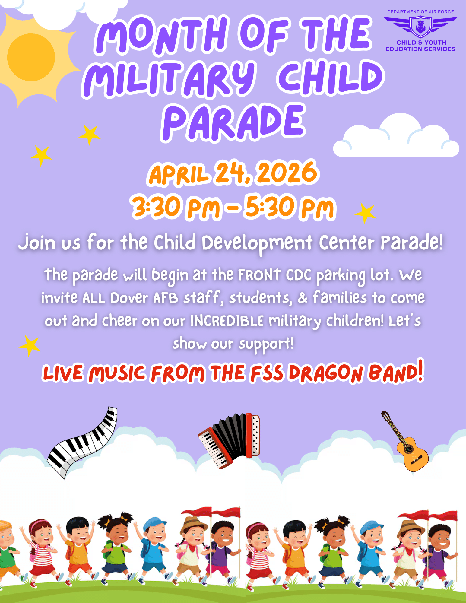 The Dover Air Force Base Child Development Center is a facility committed to providing child care for children of military members and civilian employees, ages six weeks through five years old. Care includes meeting the emotional, social, cognitive, and physical needs of the children in a safe and secure environment.