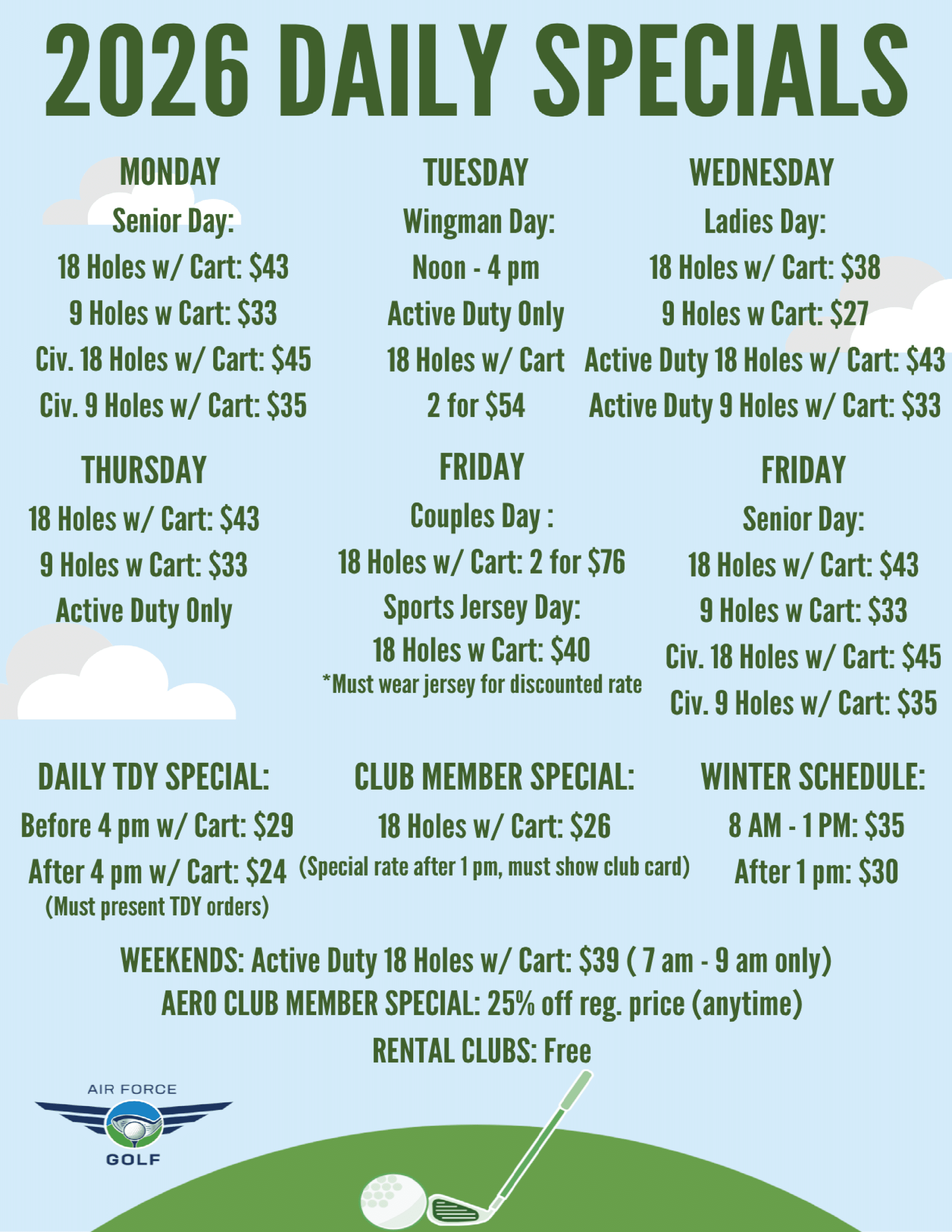 We will match or beat local golf course rates! Click HERE to view our 2026 tournament list.